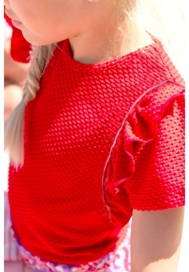 Shirt Teddie voor meisjes van het merk B.Nosy. Verkrijgbaar in de kleur rood.