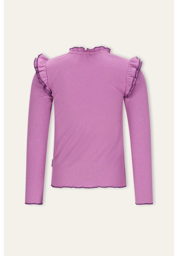 Met leuke ruchel langs de mouwen en rondom de hals.