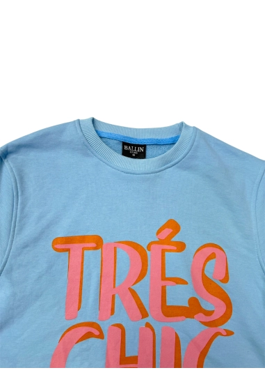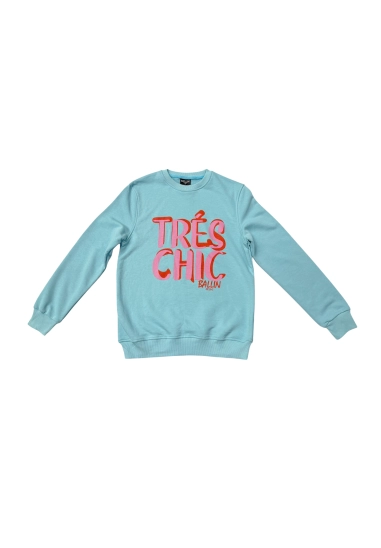 Sweater voor dames van het merk Ballin. Met leuke tekst op de voorkant. Verkrijgbaar in de kleur donker blauw, wit & licht blauw.