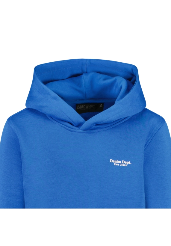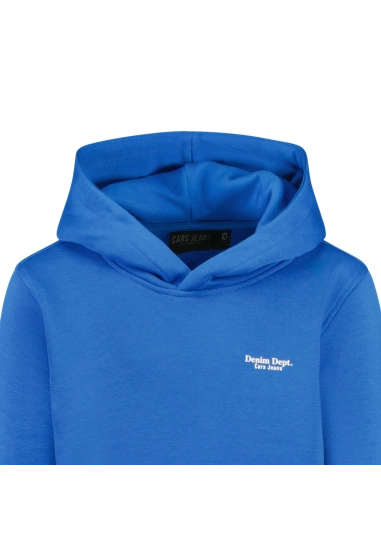 De Cars Jeans hoodie is een comfortabele en veelzijdige hoodie voor jongens, perfect voor dagelijks gebruik. Het model heeft een regular fit en is voorzien van een handige buidelzak en capuchon. Op de borst staat een subtiel Denim Dept. embleem, wat de hoodie een sportieve uitstraling geeft.