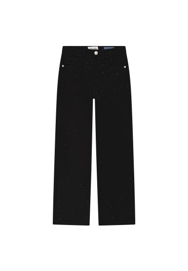 Deze jeans heeft een wide fit en stras stenen aan de voorzijde.