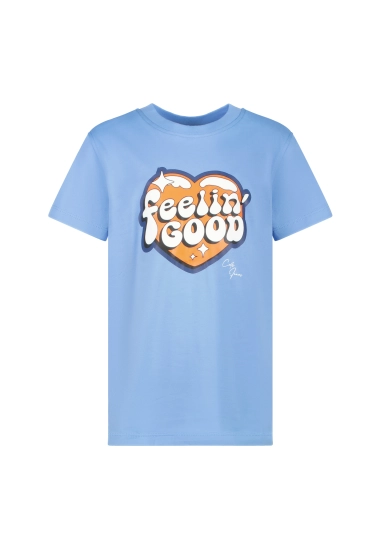 Met gave print op het shirt met de tekst 'feeling good'.