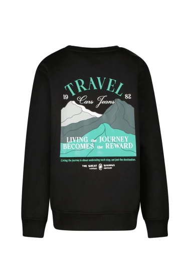 De Cars jeans sweater taray is een stoere en comfortabele sweater voor jongens. Met een regular fit en rechte vorm zit deze trui lekker losjes en is hij ideaal voor dagelijks gebruik. Op de borst staat een subtiel travel cars jeans embleem, terwijl de achterkant is voorzien van een opvallende grote backprint met berglandschap en inspirerende tekst. Perfect voor jongens die van avontuur houden.