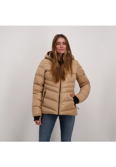 Winterjas Resy voor dames van het merk Cars Jeans. Deze warme jas heeft een capuchon en is verkrijgbaar in de kleuren zwart, off white, donker groen en zand.