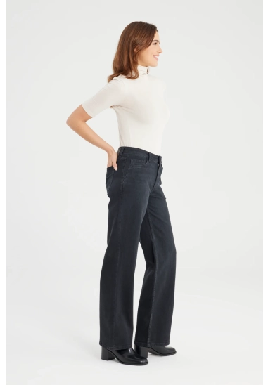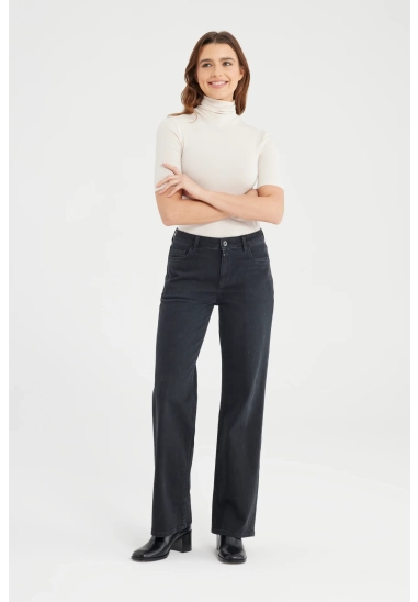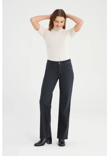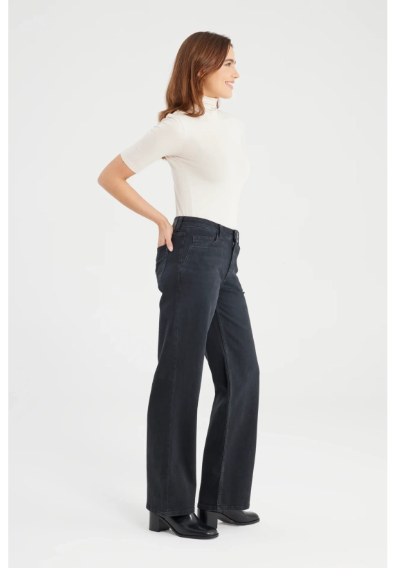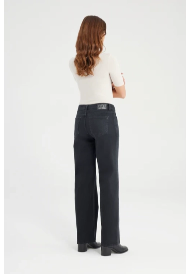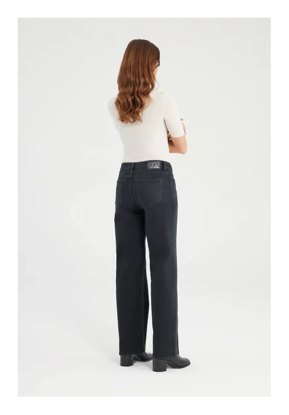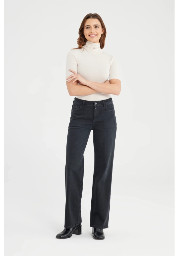 De Nova Jeans in black vt is een wide leg broek met een comfortabele stretch. De jeans heeft een high waist model met meerdere zakken en riemlusjes. De pasvorm is aangesloten rond het zitvlak en recht vanaf de dij tot aan de enkel, perfect voor een klassieke en flatterende look. De jeans is gemaakt van een denim stof en is afgewerkt met een ritssluiting en subtiele details die de jeans iedere dag draagbaar maken.