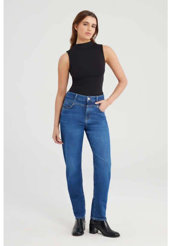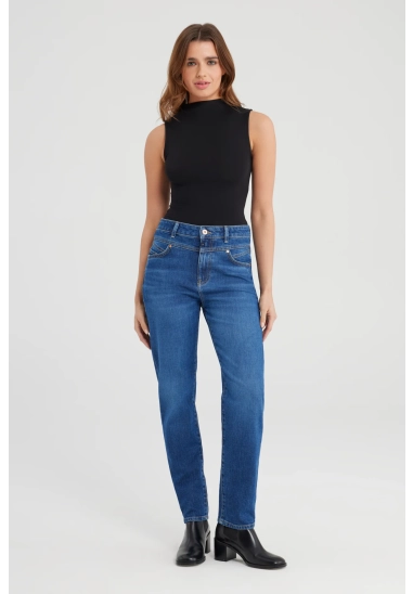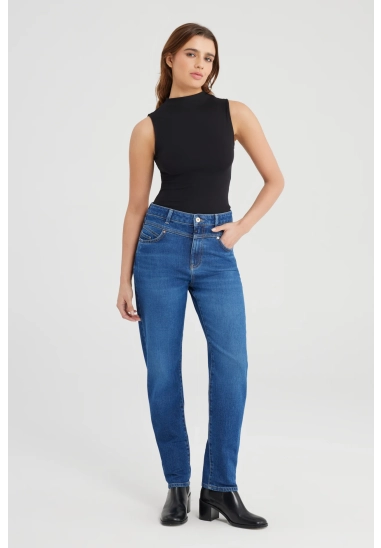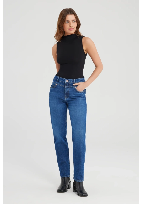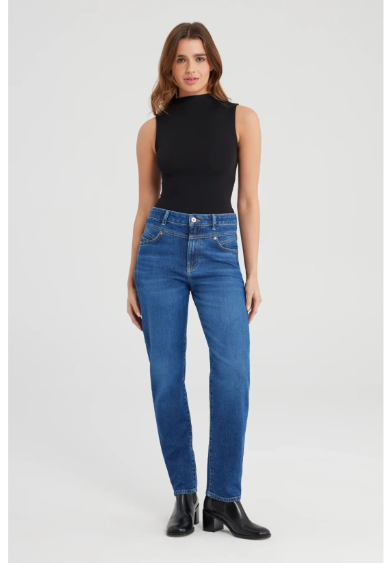 Mid Waist, Regular Length, 5 Pocket, Boyfriend Fit, Strech.