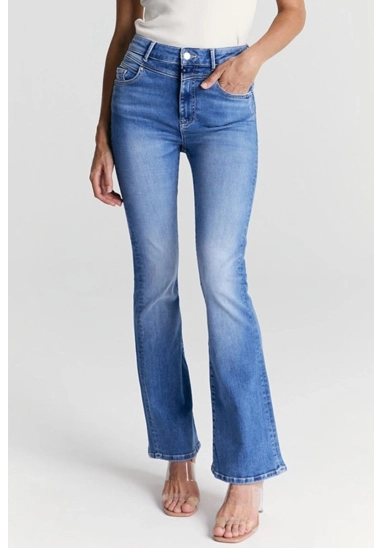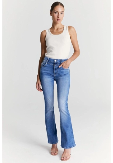 Jeans Matilda van Cup Of Joe is een flared model in een medium blauwe wassing. Het heeft een medium taille en sluit met een rits en knoop. De stof bevat stretch, wat zorgt voor extra comfort tijdens het dragen.