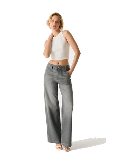 High waist jeans met wijde uitlopende pijpen voor dames van het merk Cup of Joe.