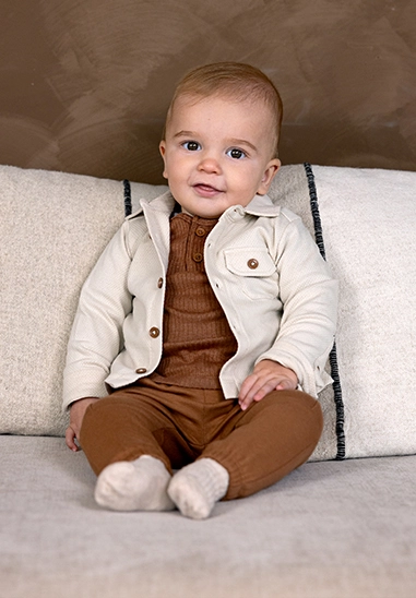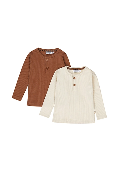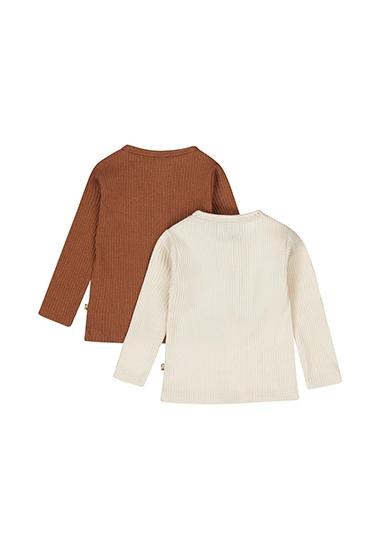 2-pack Shirtjes met lange mouwen voor baby jongens van het merk Dirkje. In deze verpakking zit een longsleeve in een beige en bruine kleur.