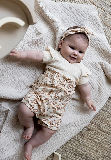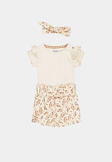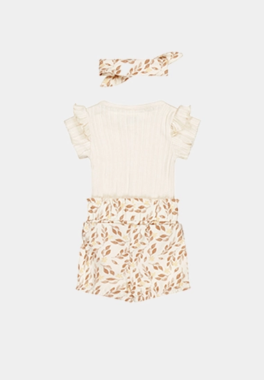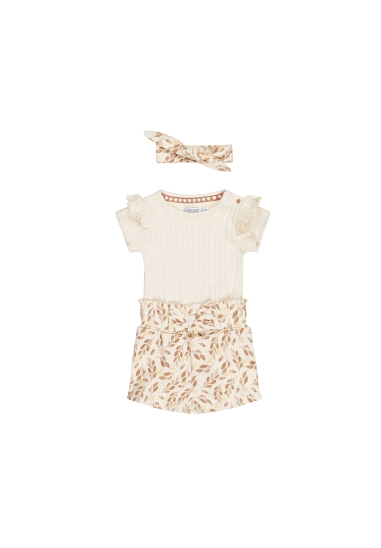 Bestaande uit Romper, broekje en leuke haarband.