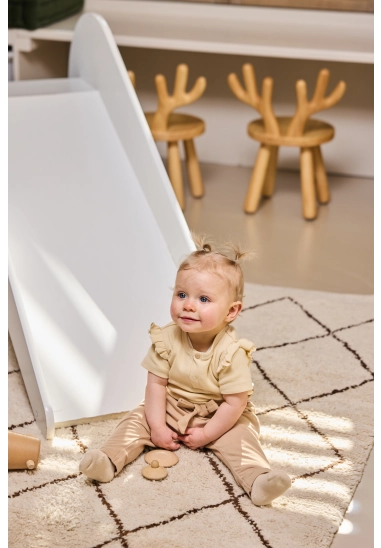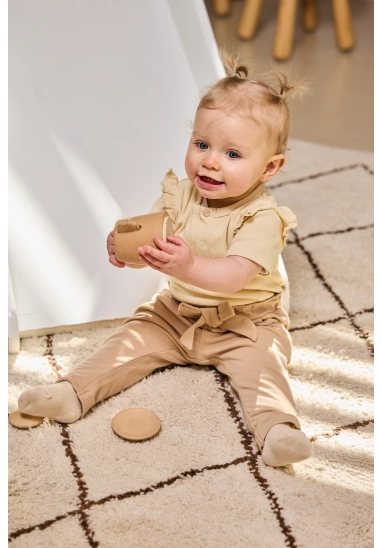 Broekje voor meisjes van het merk Dirkje. Verkrijgbaar in de kleur beige.