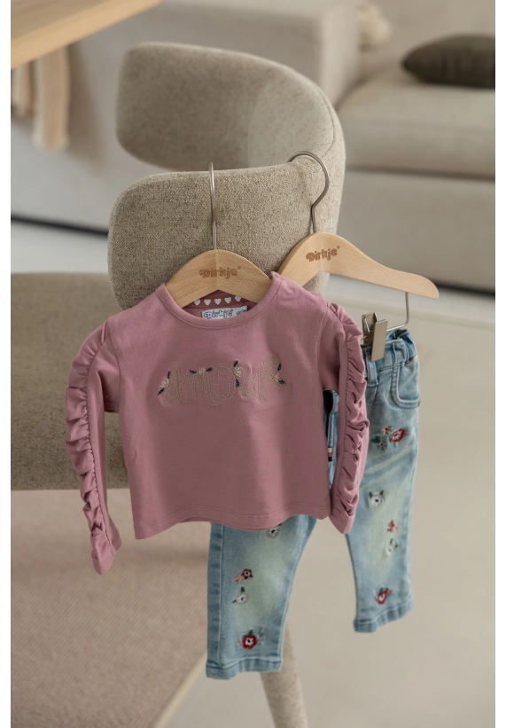 Broekje voor meisjes van het merk Dirkje. Verkrijgbaar in de kleur blue jeans.