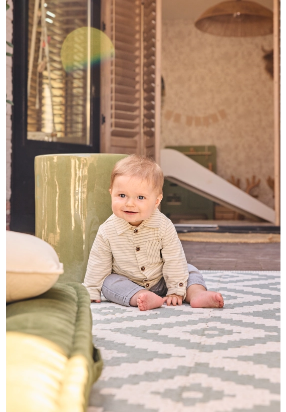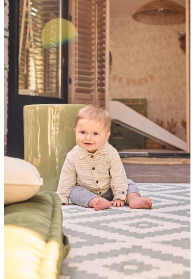 Broekje voor jongens van het merk Dirkje. Verkrijgbaar in de kleur grijs.