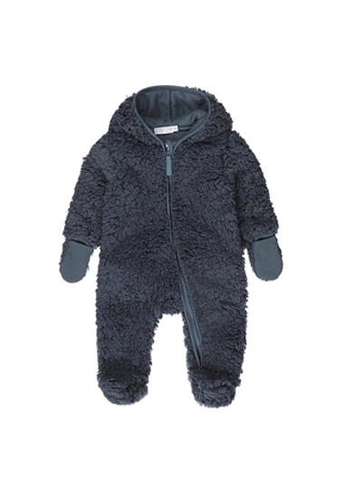 Zacht teddy buitenpakje voor baby jongens van het merk Dirkje. Het pak is verkrijgbaar in het blauw.