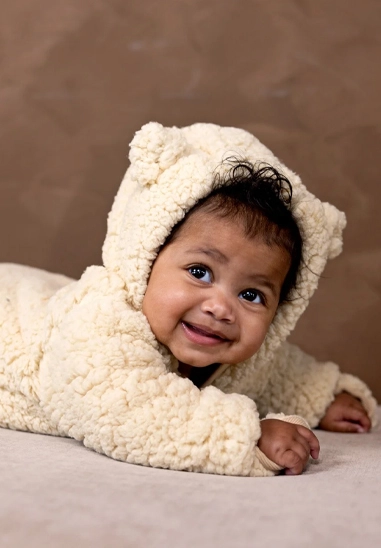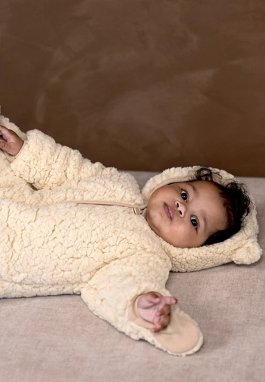 Babypakje unisex van het merk Dirkje. Dit zachte teddy pakje is ideaal voor de koude winterdagen. Verkrijgbaar in het ivoor wit.