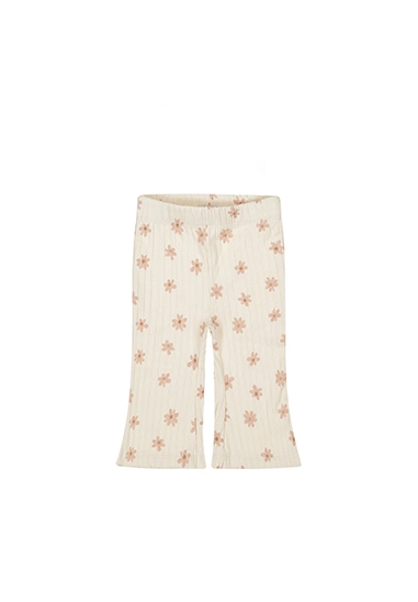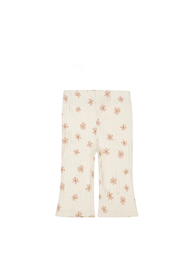 Flared legginkje met print voor baby meisjes van het merk Dirkje. De legging is verkrijgbaar in een ivoor witte kleur met koraal accenten.