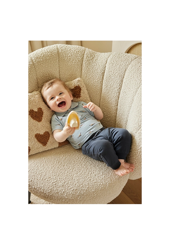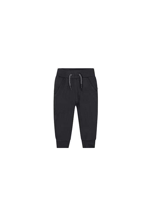 Joggingbroekje voor baby jongens van het merk Dirkje. Het broekje heeft een elastische band en is verkrijgbaar in het donker grijs.