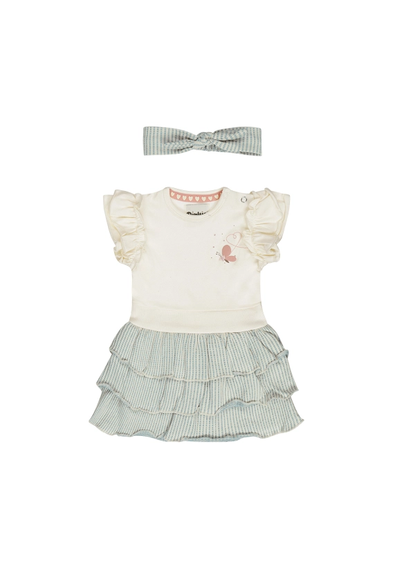 Jurk + haarband voor meisjes van het merk Dirkje. Verkrijgbaar in de kleur ivoor wit.
