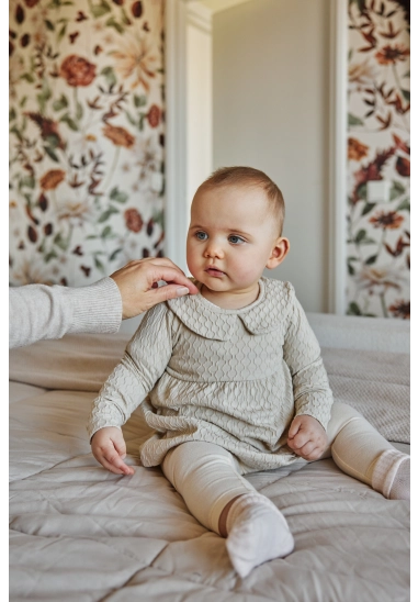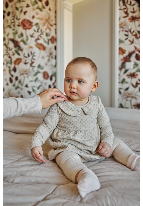 Jurkje voor meisjes van het merk Dirkje. Verkrijgbaar in de kleur beige.