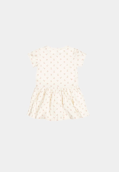 Korte mouw en met leuke kersen trosjes op het jurkje.