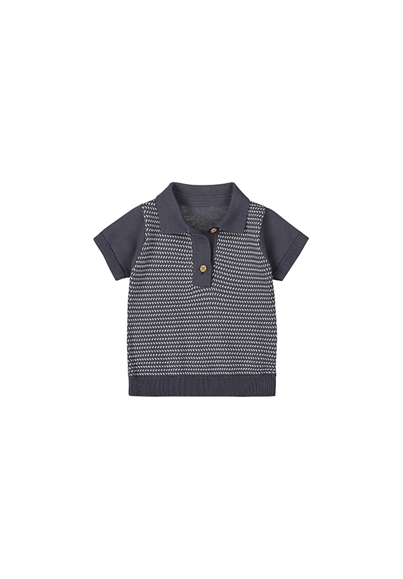 Poloshirtje met korte mouwen voor baby jongens van het merk Dirkje. Het shirtje is verkrijgbaar in deze donker blauwe kleur.