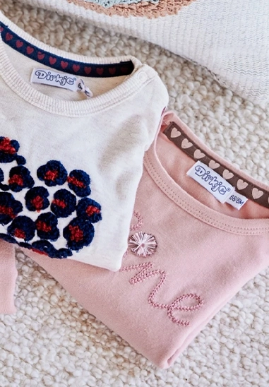 Shirtje lange mouwen voor baby meisjes van het merk Dirkje. Het shirtje heeft een leuke applicatie. Verkrijgbaar in de kleur roze.
