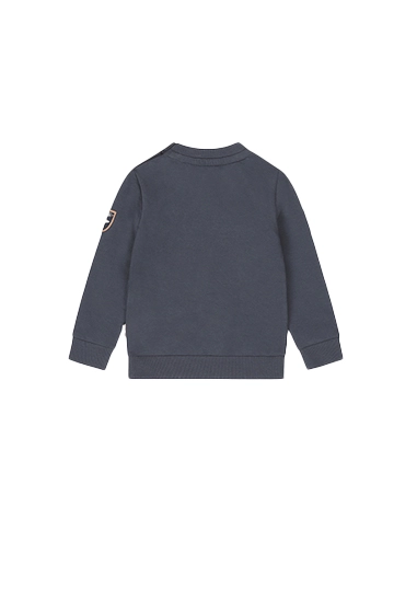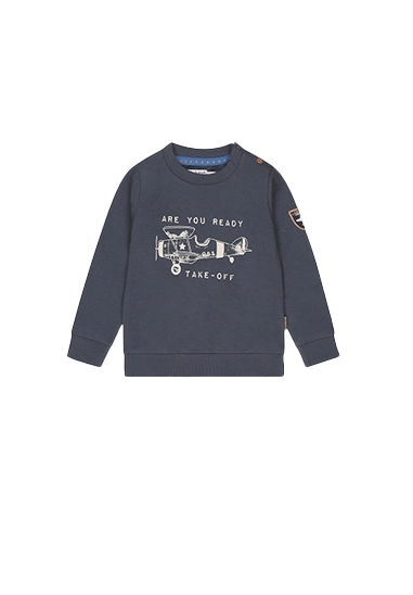 Sweater voor jongens van het merk Dirkje. De sweater heeft een print en een donker blauwe kleur.