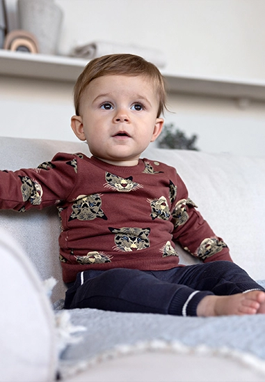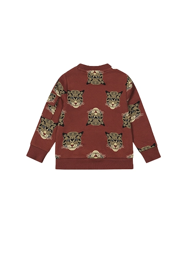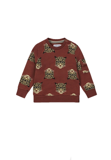 Sweater ronde hals met tijgerprints voor jongens van het merk Dirkje.Verkrijgbaar in steenrood.