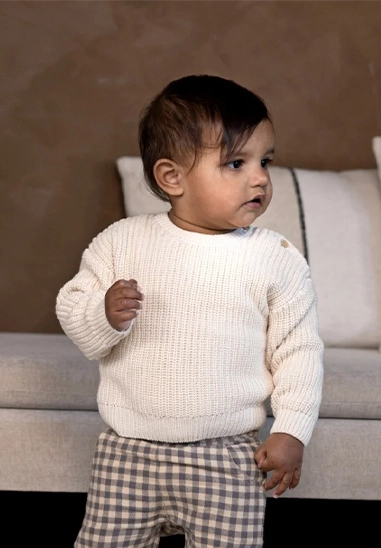 Sweater voor meisjes van het merk Dirkje. Deze uni sweater is verkrijgbaar in het ivoor wit.