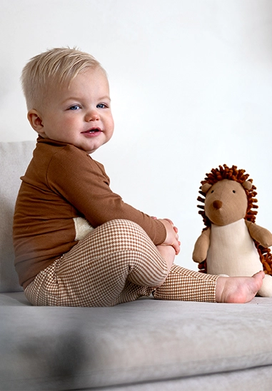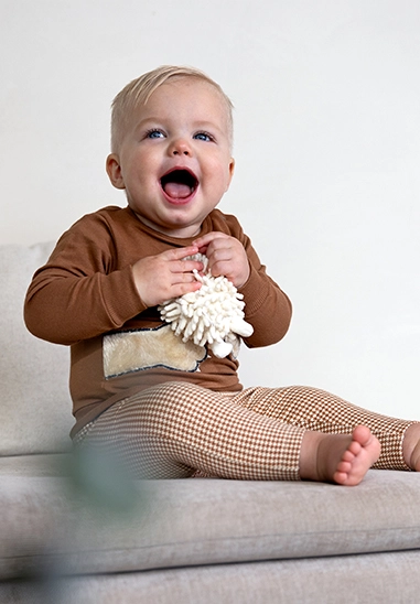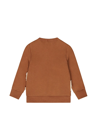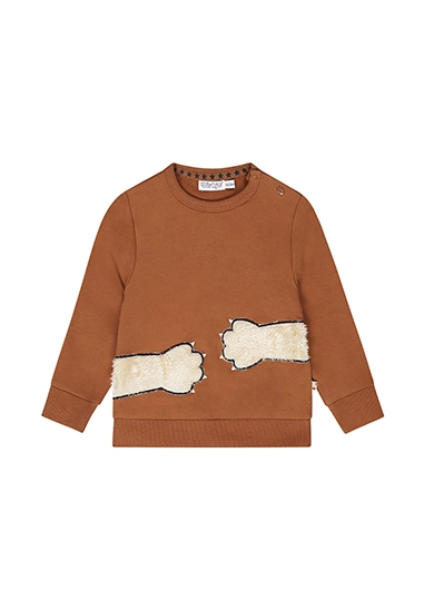 Sweatertje voor baby jongens van het merk Dirkje. Het sweatertje heeft een leuke applicatie met handjes. Verkrijgbaar in een mooie bruine kleur.