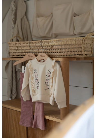 Sweatertje voor meisjes van het merk Dirkje. Verkrijgbaar in de kleur ivoor wit.