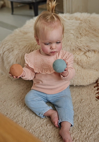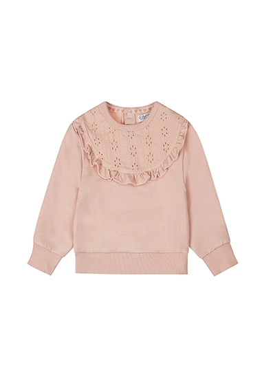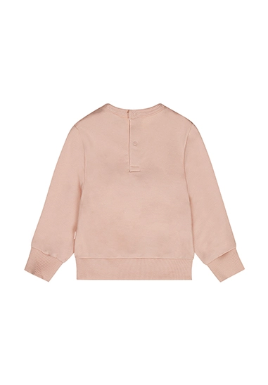 Sweatertje voor baby meisjes van het merk Dirkje. De sweater heeft een mooie kraag met embroiderie en is verkrijgbaar in een lichte koraal kleur.