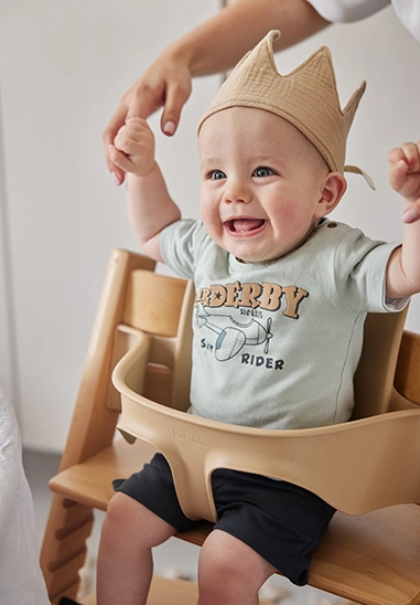 T-shirtje met korte mouwen voor baby jongens van het merk Dirkje. Het shirtje heeft een stoere print op de borst en is verkrijgbaar in een mooie licht groene kleur.
