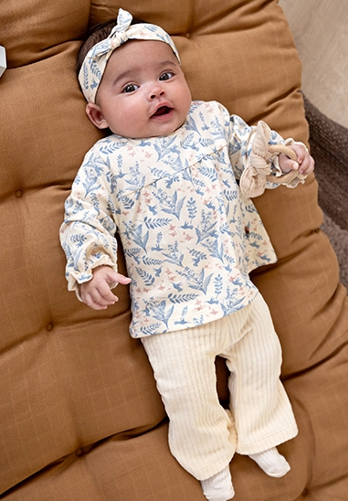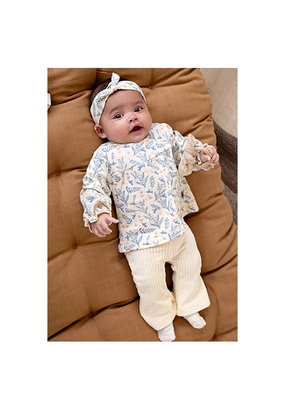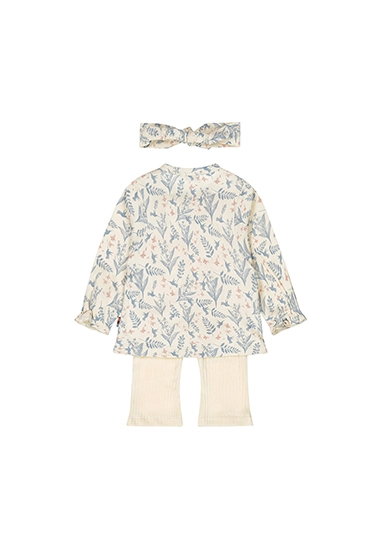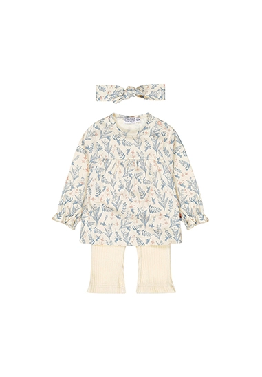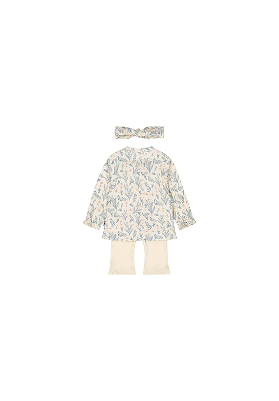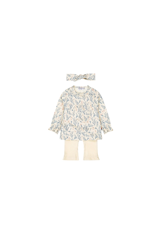 Tweedelig setje met haarbandje voor baby meisjes van het merk Dirkje. Dit jurkje met legging is verkrijgbaar in het ivoor wit.