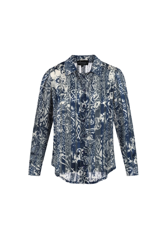 Blouse met een opvallende bloemenprint in warme bordeaux tinten en subtiele blauwe accenten.