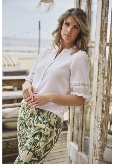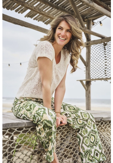Broek Sienna voor dames van het merk Elvira. Verkrijgbaar in de kleur print groen.