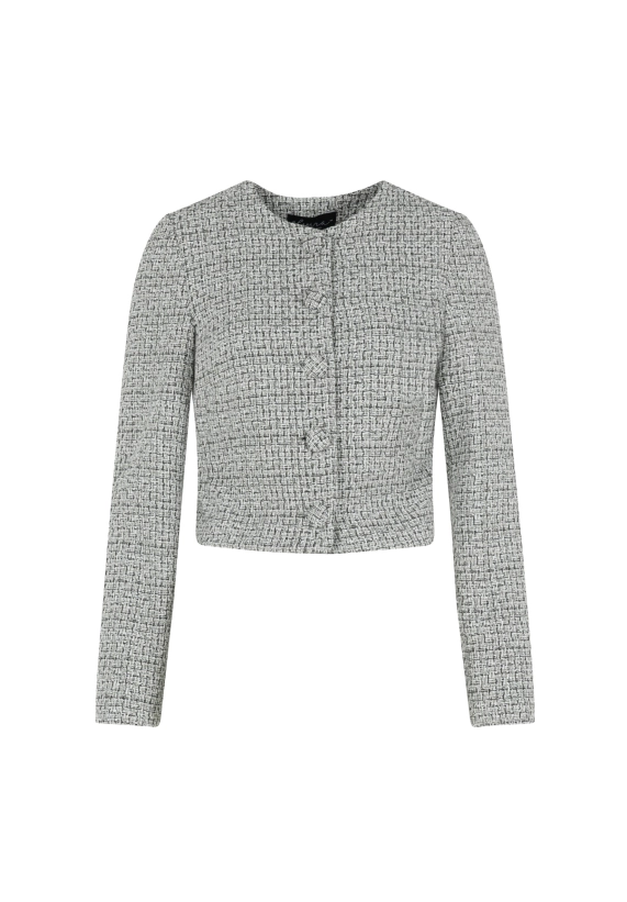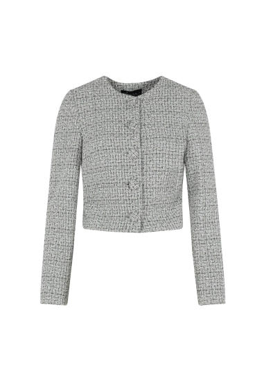 Jasje Hailey voor dames van het merk Elvira Collections. Dit korte tweed jasje is verkrijgbaar in een mooie groene tint.