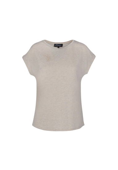 Shirt Leaves met korte mouwen voor dames van het merk Elvira. Met leuke print op de achterkant. Verkrijgbaar in de kleur beige.