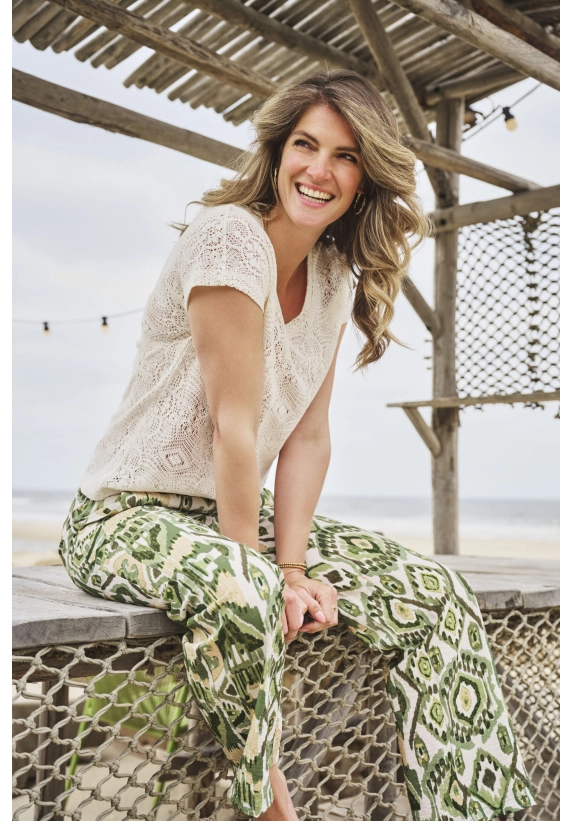 Top Mila voor dames van het merk Elvira. Verkrijgbaar in de kleur groen & ivoor wit.