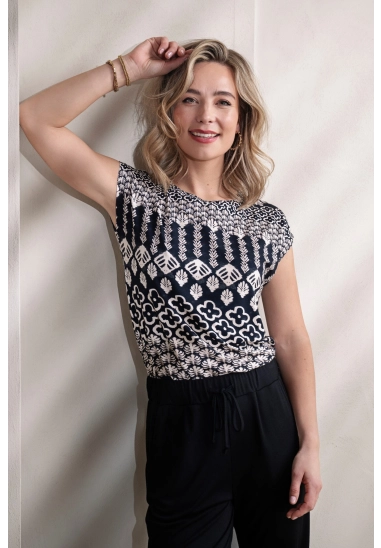 Verkrijgbaar in vrolijke print met de kleuren zwart/wit.