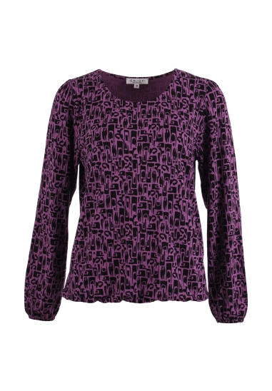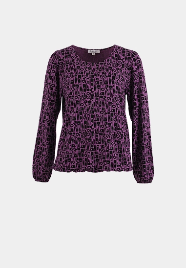 Geprinte blouse voor dames van het merk Enjoy. De blouse heeft een elastieke band onder en pofmouwtjes. Verkrijgbaar in een kobalt blauwe en cyclaam kleur.