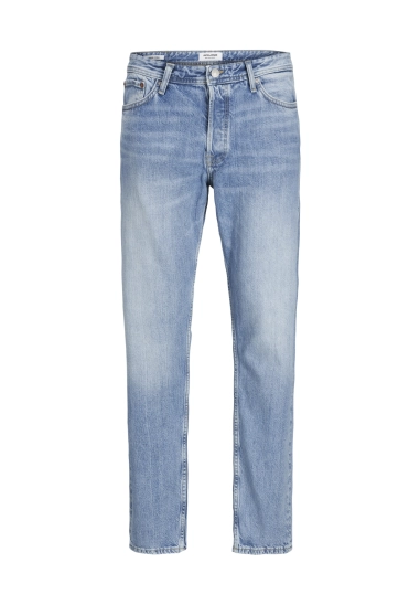 Loose fit jeans Chris voor heren van het merk Jack & Jones. Deze spijkerbroek heeft een hoge pasvorm en valt ruim op het bovenbeen. De gulp heeft een ritssluiting. De jeans is gedeeltelijk gemaakt van gerecycled katoen. Verkrijgbaar in een mooie blauwe 920 stonewash denim.