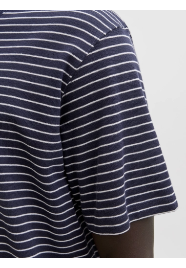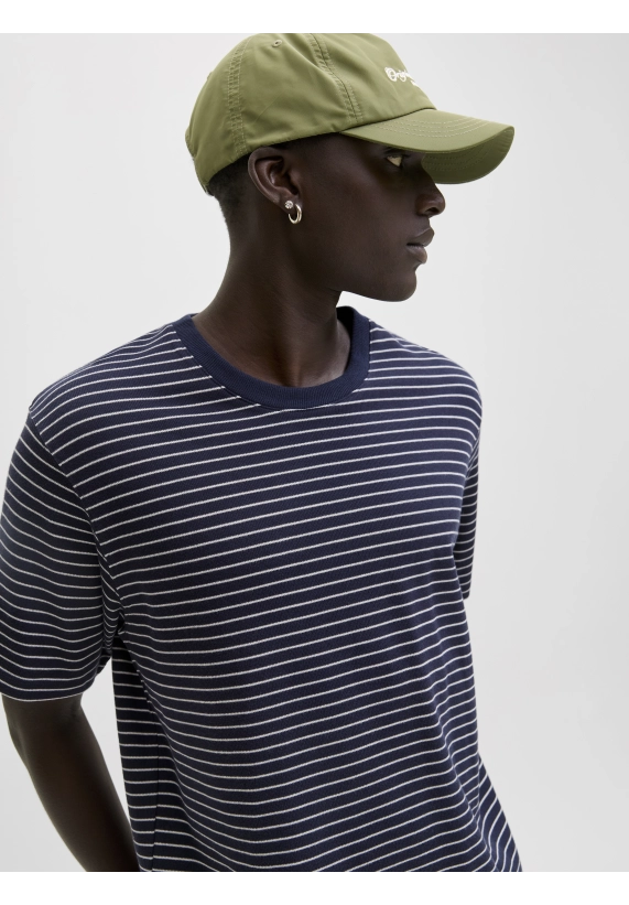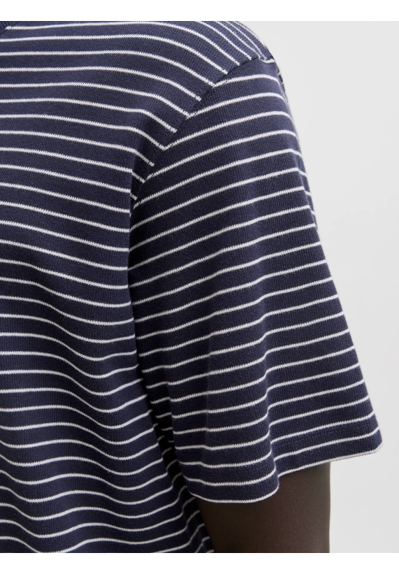 Verkrijgbaar in de kleuren donkerblauw en ivoor wit gestreept.