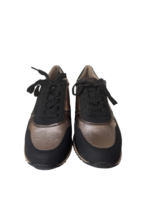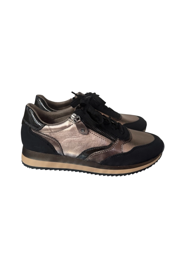 Sneakers voor dames van het merk Jana. Verkrijgbaar in de kleur zwart & zwart met brons.