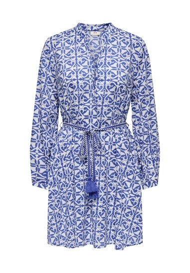 Verkrijgbaar in de kleur blauw en donkerblauw met print.