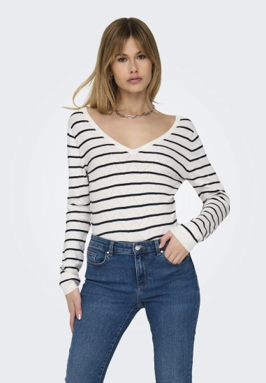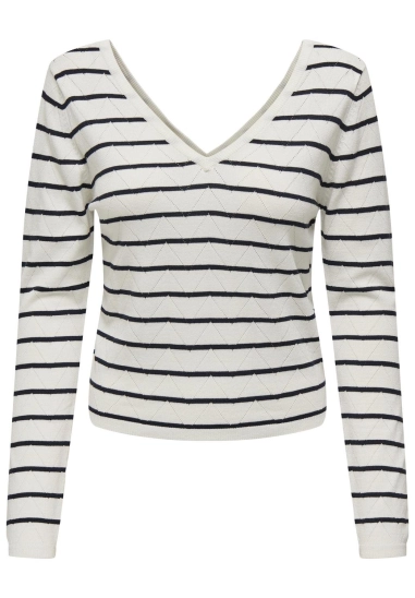 Verkrijgbaar in de kleur wit met donkerblauw gestreept.