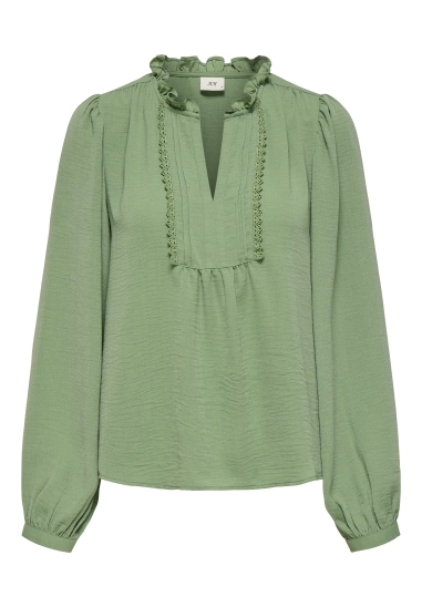 Shirt Rachel voor dames van het merk JDY. Verkrijgbaar in de kleur ivoor wit & groen.