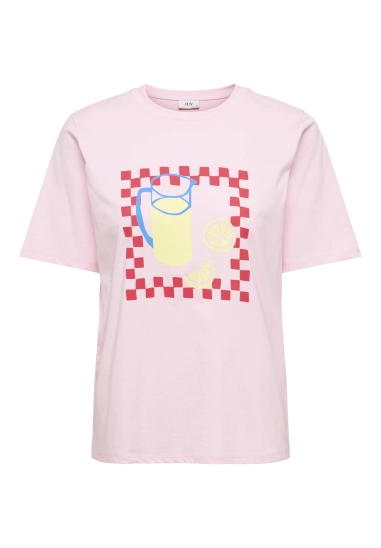 Shirt Tinne voor dames van het merk JDY. Verkrijgbaar in de vrolijke kleuren, licht blauw, roze en licht geel.