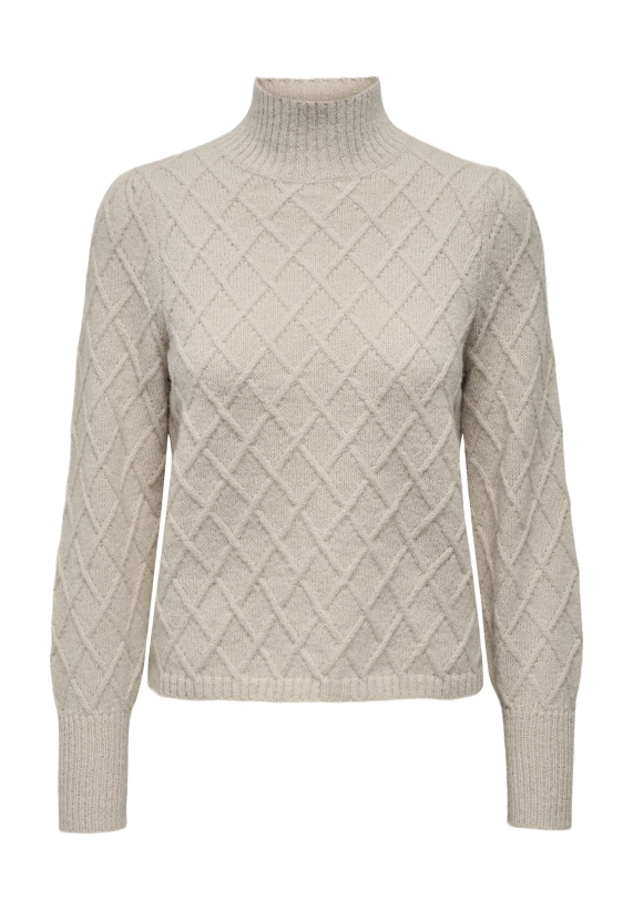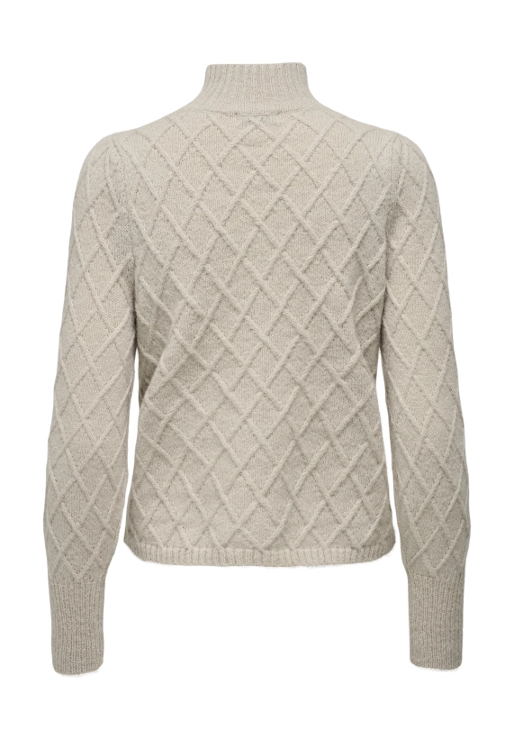 De trui heeft een gebreid ruit motief.