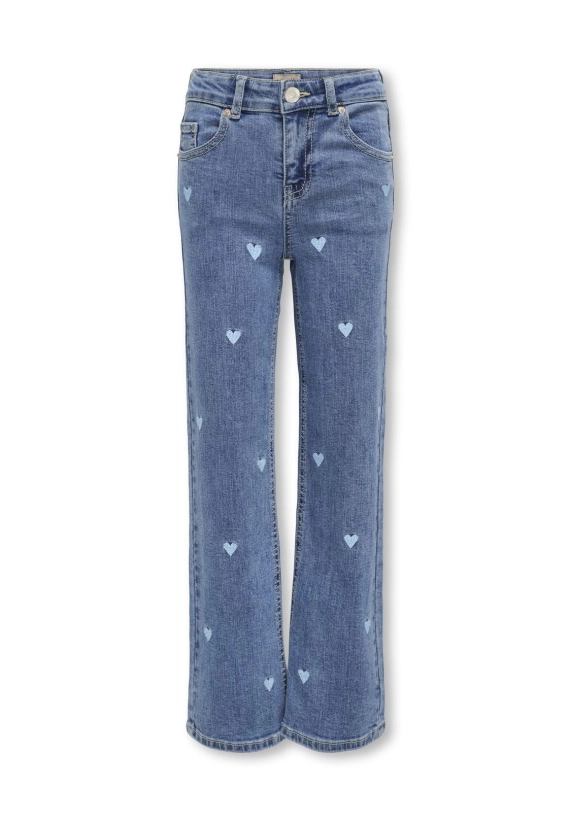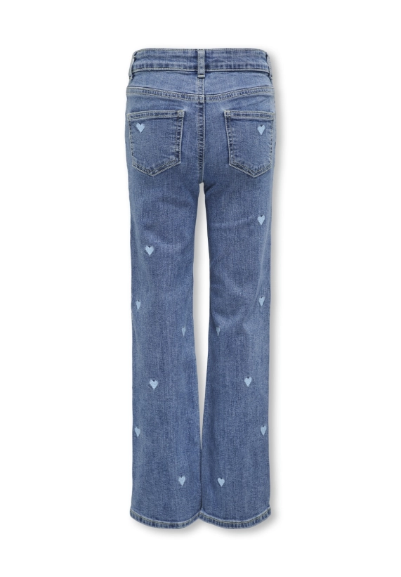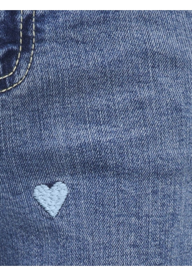 Verkrijgbaar in de jeans kleur light medium met allover hartjes op de broek.